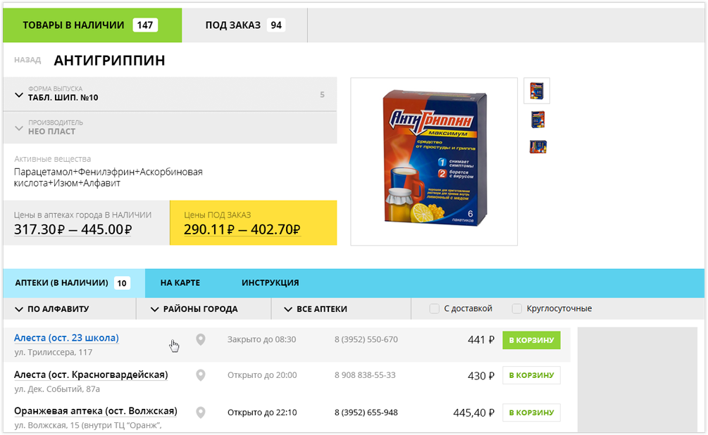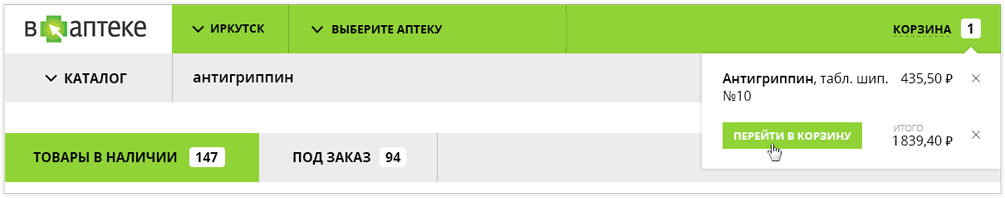 пока он точно находится в аптеке, забронируйте его с помощью «В Аптеке»